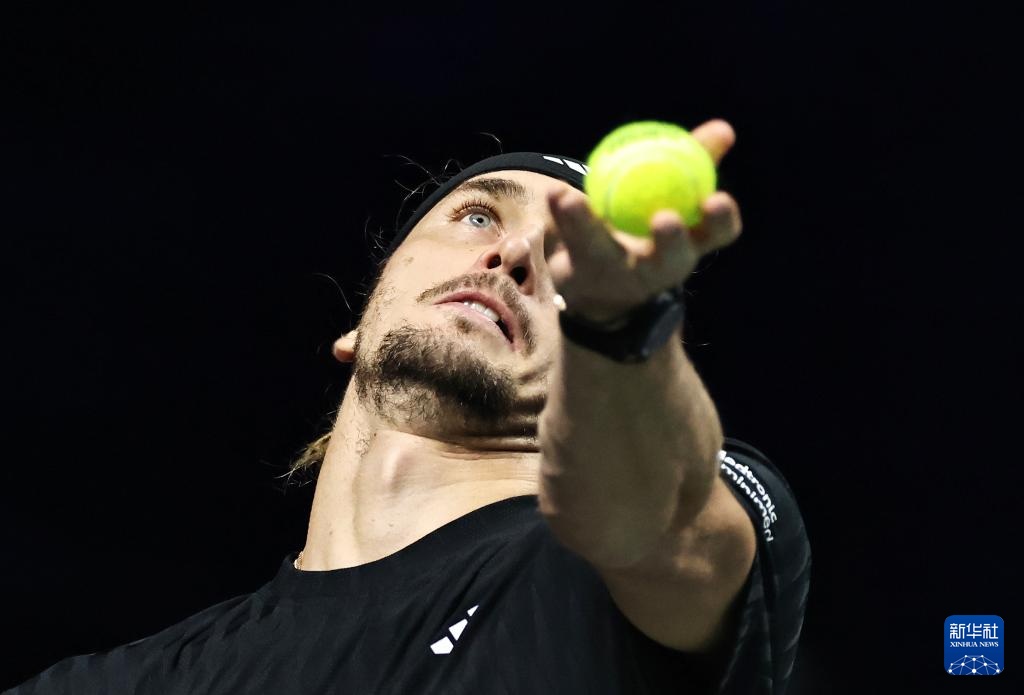10月31日,兹韦列夫在比赛中发球。新华社记者 高静 摄