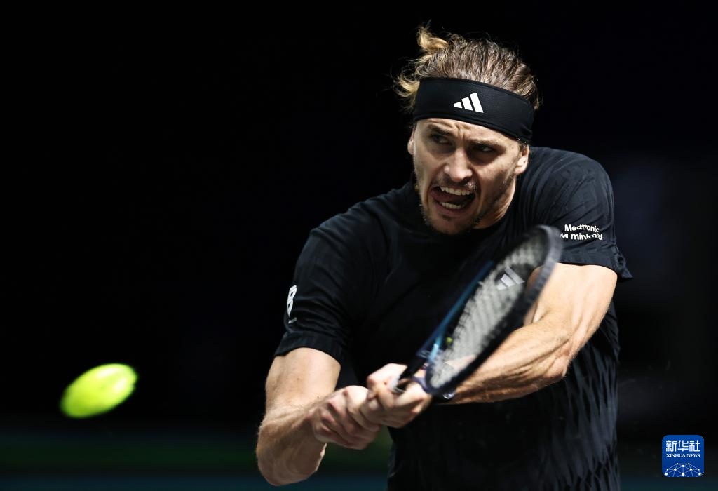 10月31日,兹韦列夫在比赛中回球。新华社记者 高静 摄