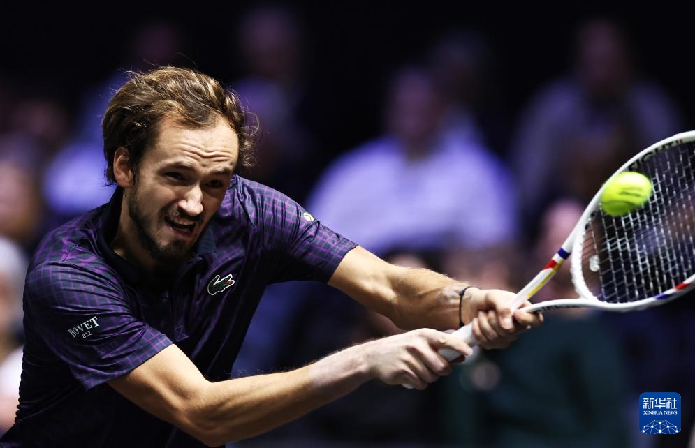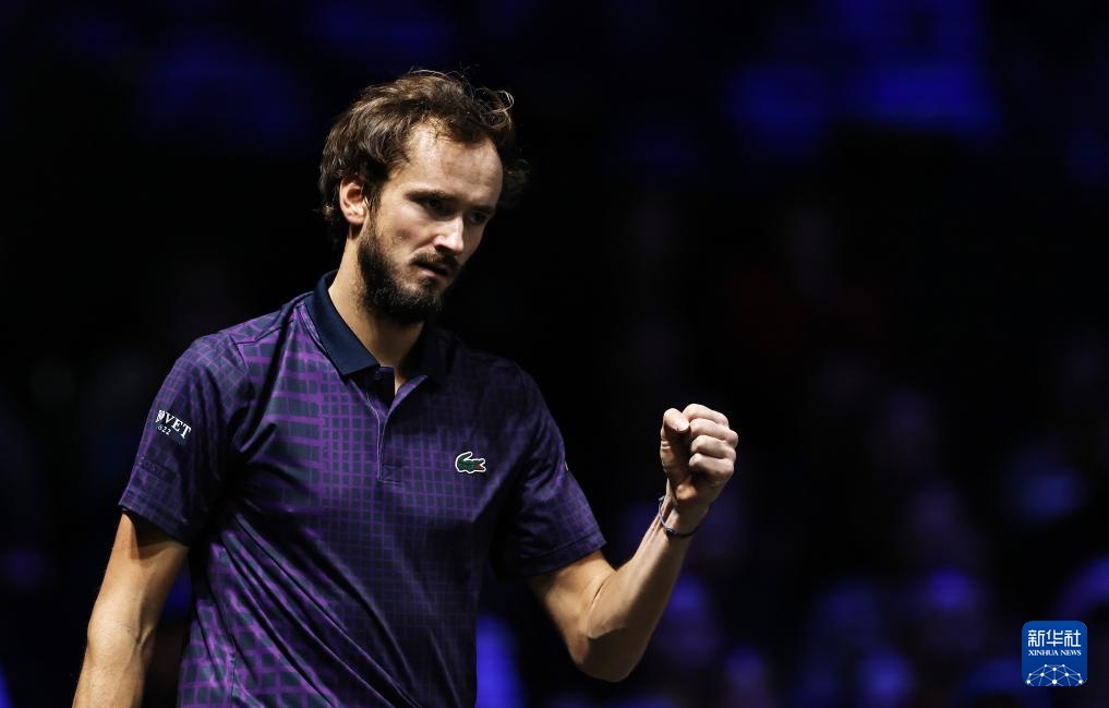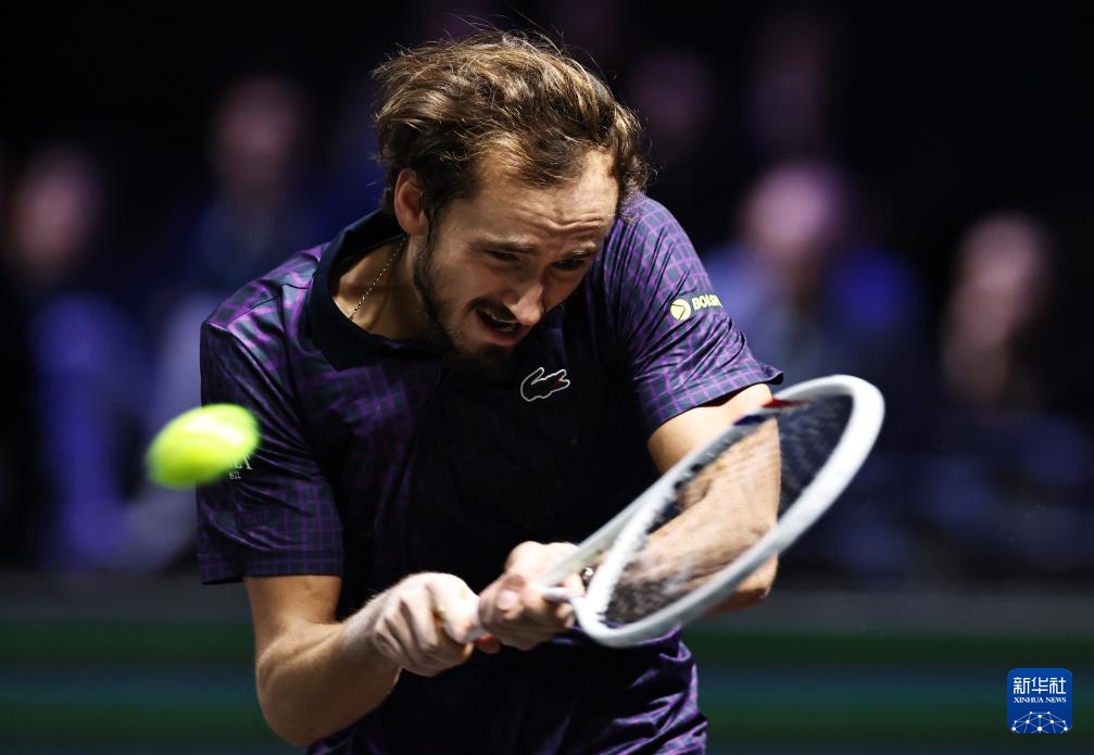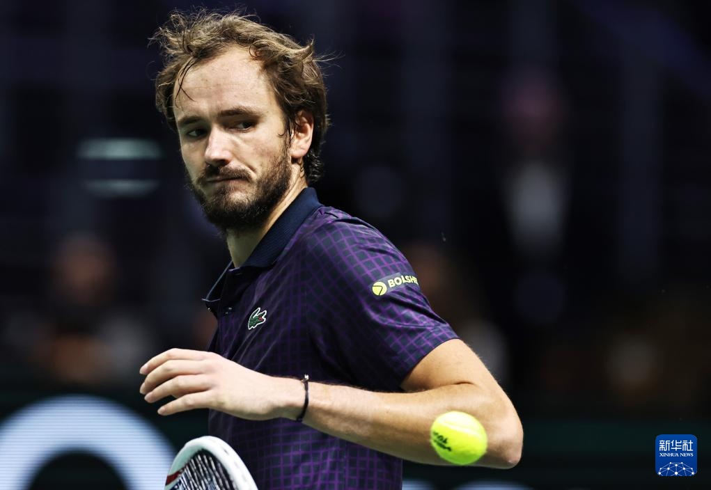 10月31日,梅德韦杰夫在比赛中回球。新华社记者 高静 摄
